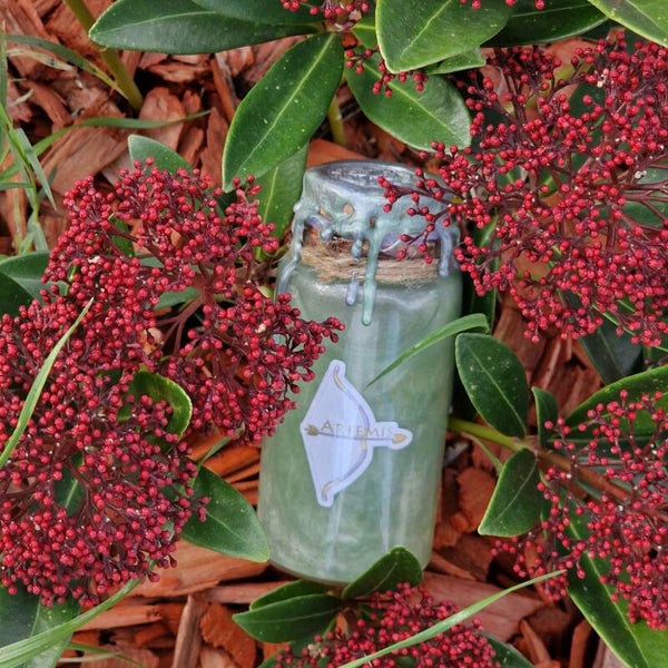 Artémis, gardienne des forêts et protectrice des femmes, symbolise l’indépendance et l’harmonie avec le monde naturel. Sa potion est un hommage à l’esprit sauvage et à la sagesse instinctive.